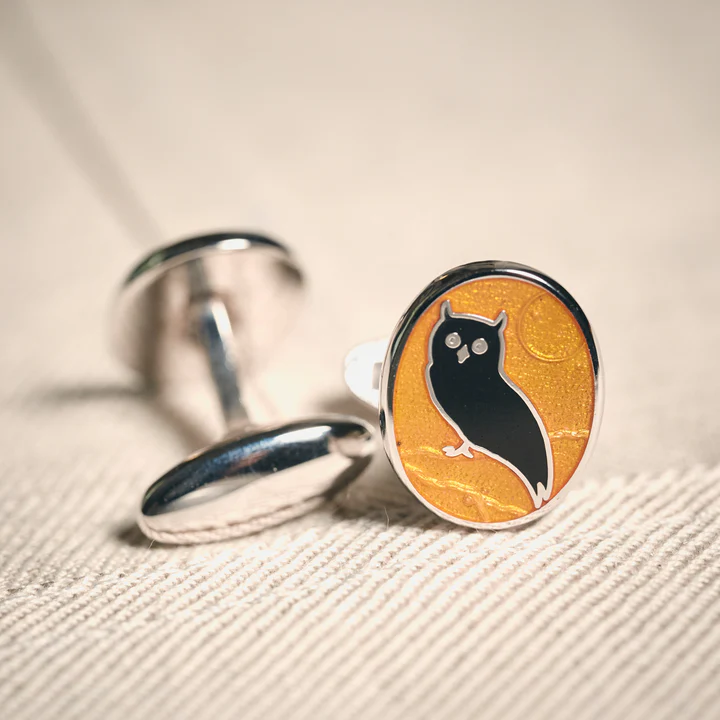 Home / Shop / Cufflinks / Manschettenknöpfe Eule Orange/Schwarz