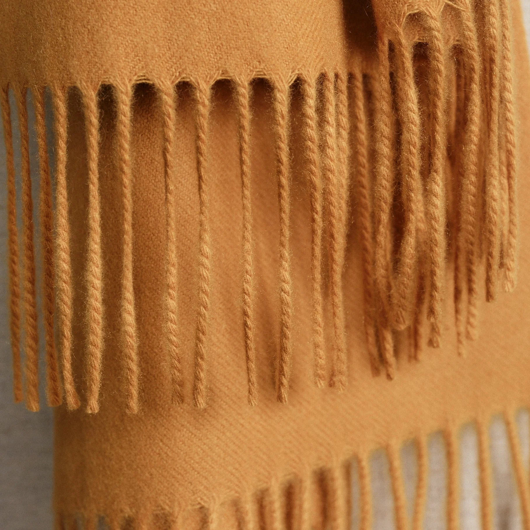 Angenehme weiche, aber trotzdem robuste Qualität. Mit Fransen.